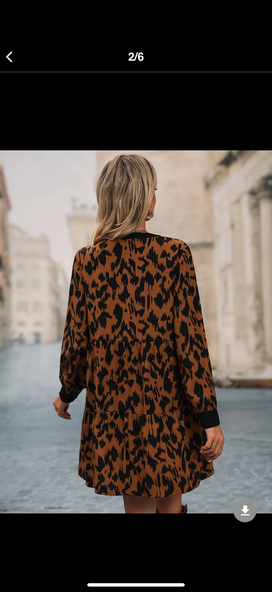 Leopard Tie Neck Long Sleeve Dress