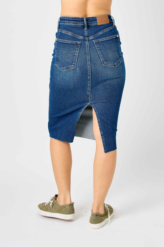 HIGH WAIST BACK SLIT HEM MID LENGTH SKIRT