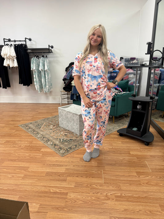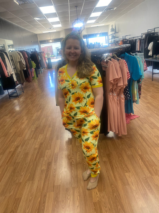 BOMBOM Floral Round Neck Puff Sleeve Top