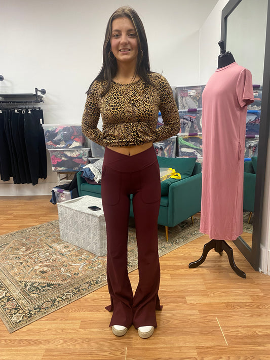 NYLON RIB V WAIST CORSSOVER FLARED LEGGINGS