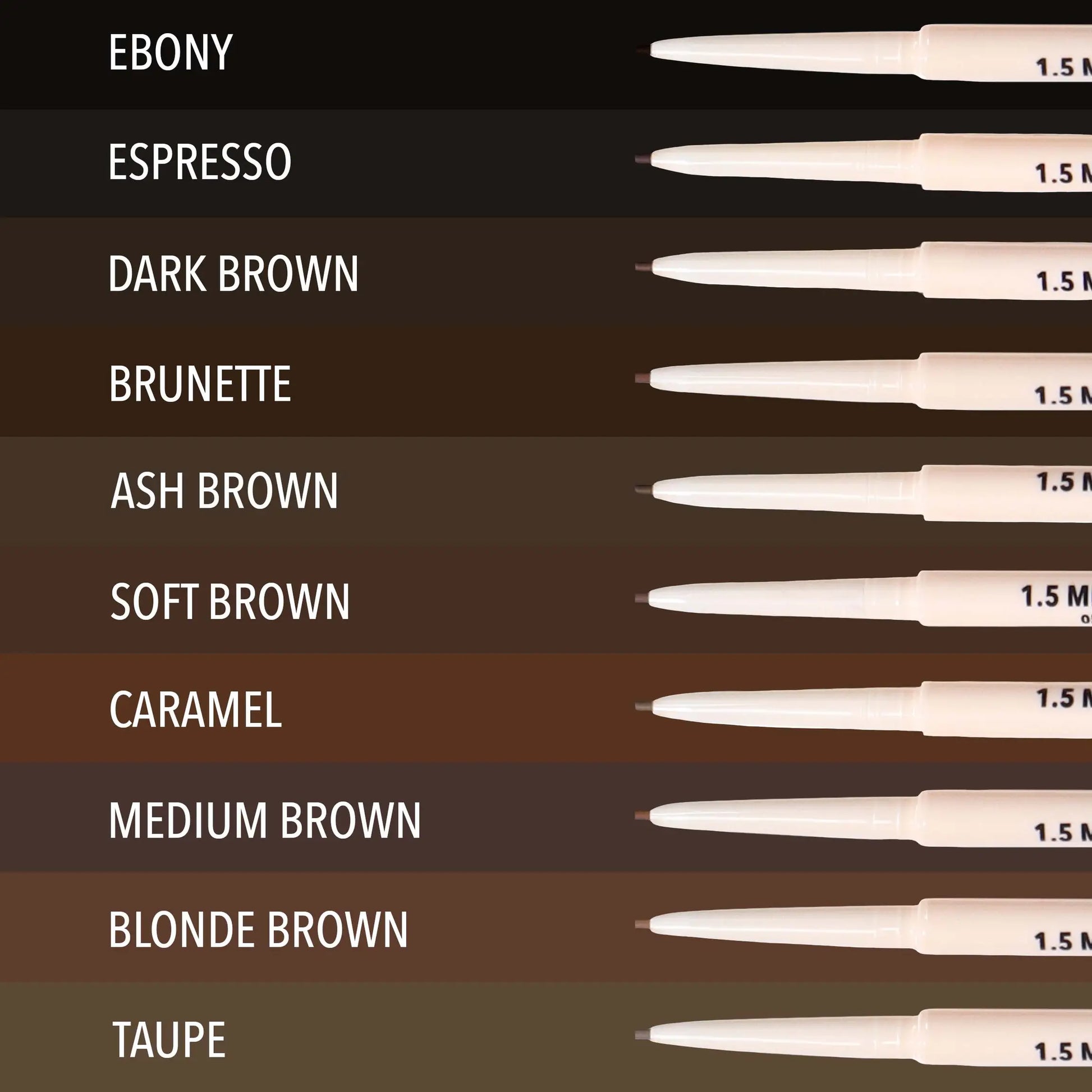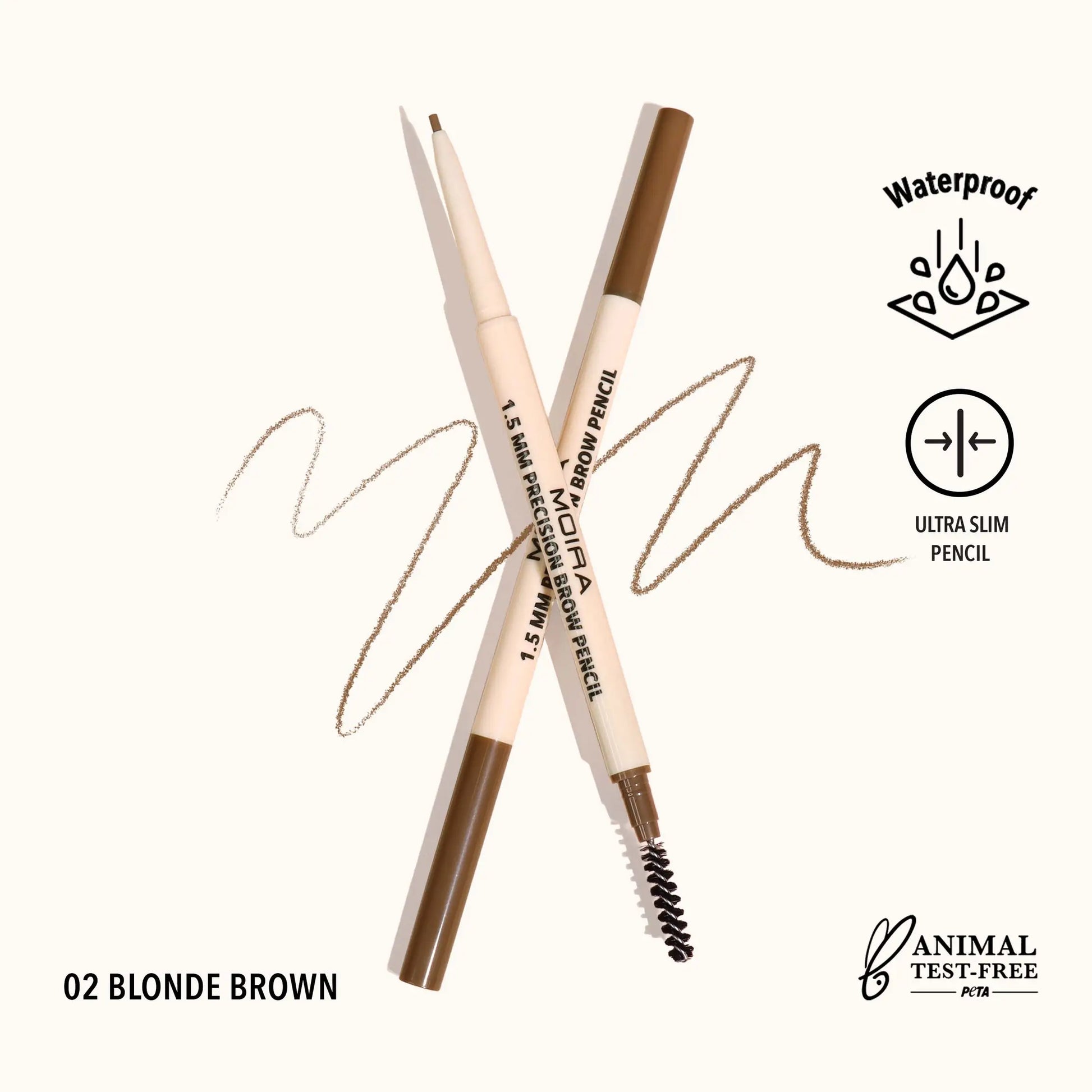 Achieve perfect brows with our MOIRA 1.5MM Precision Brow Pencils. An ultra-slim retractable tip to help create hair-like strokes for a natural brow finish. This rich, waterproof formula will stay put for all-day wear.