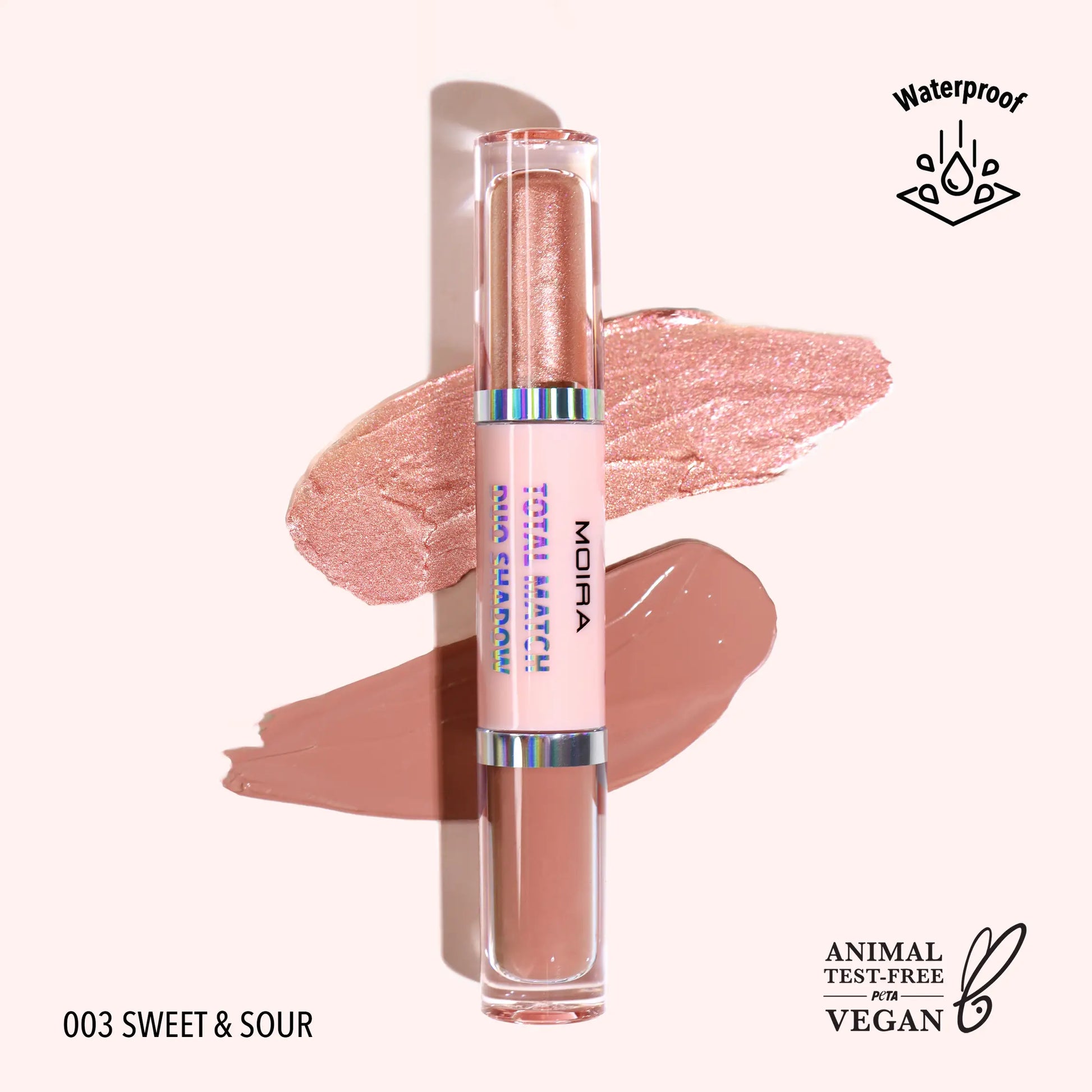 MOIRA Total Match Duo Shadow is a gorgeous dual-ended shadow with a liquid matte on one side and a beautiful shimmer on the other. A waterproof, long-lasting, high pigment pay-off formula that won't crease and stays in place!