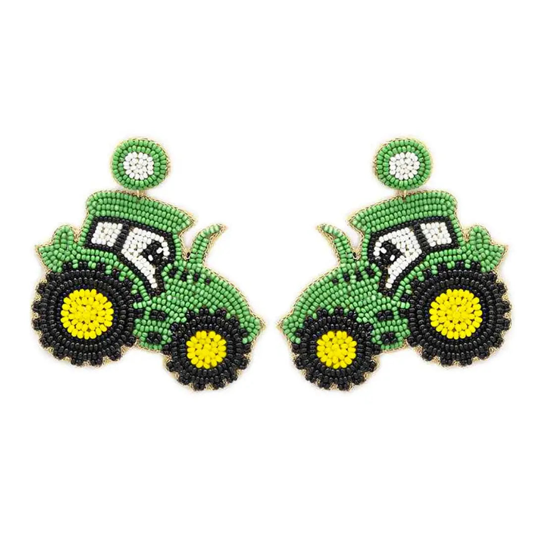 Make a statement in these fun tractor beaded earrings, the lightweight beaded design with felt backing make them super comfortable to wear! 2" H Beaded with Felt Backing Post Earrings